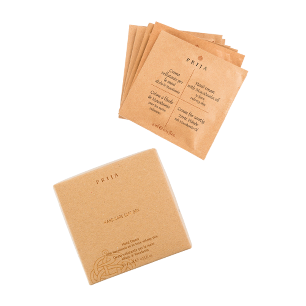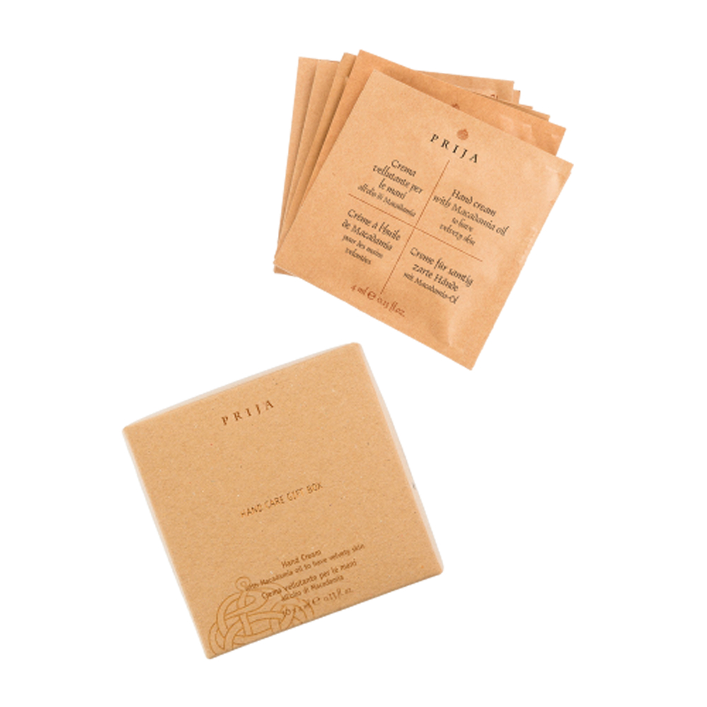 Kit regalo con 10 pezzi di Crema vellutante per le mani all’olio di Macadamia.