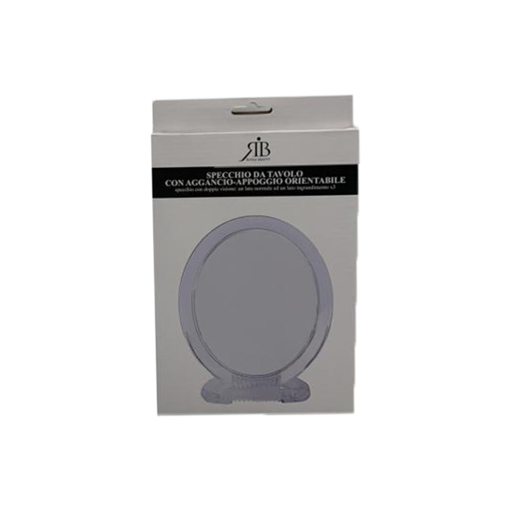 Specchio da tavolo con aggancio-appoggio orientabile.