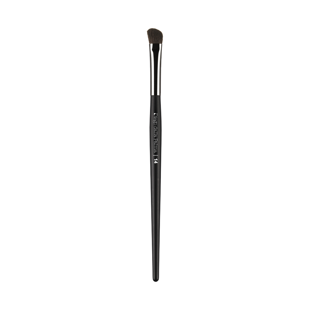 Pennello in setole naturali dal taglio obliquo e bombato per l’applicazione degli ombretti