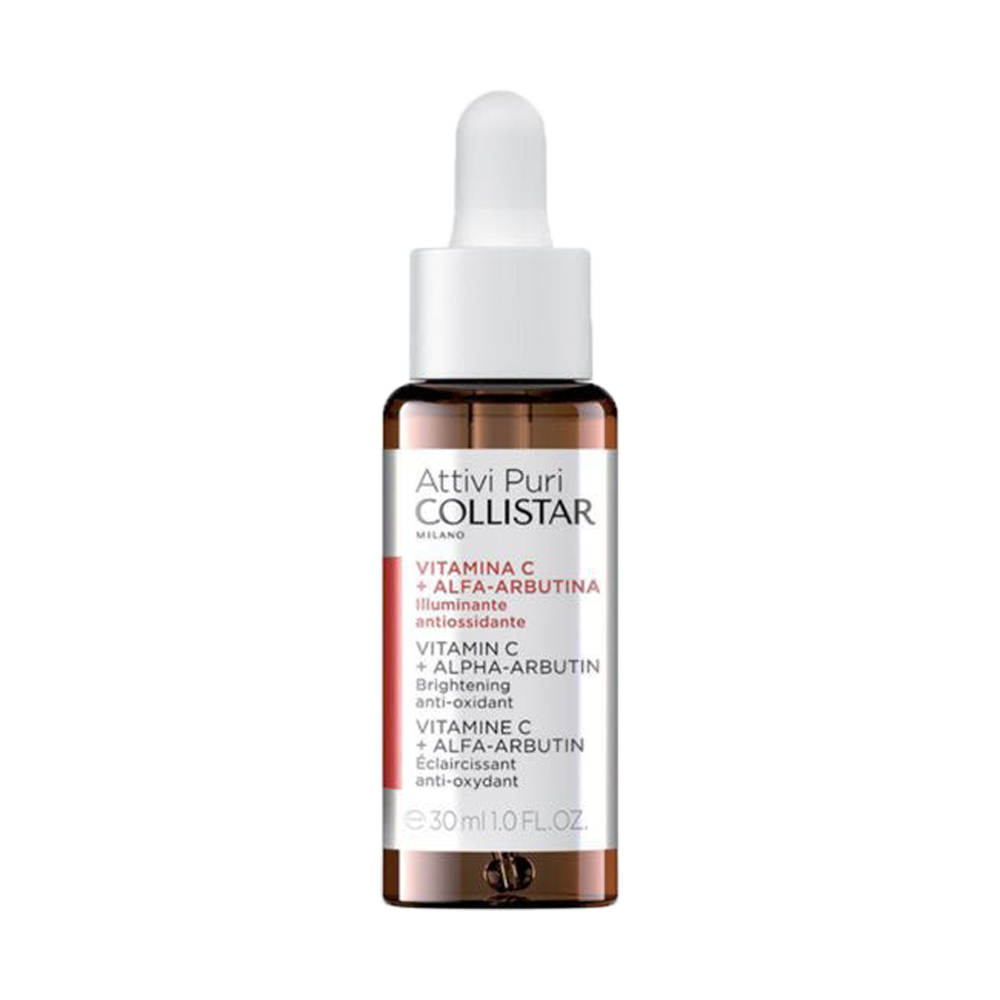 Collistar Attivi Puri Vitamina C + Alfa-Arbutina è un trattamento concentrato ad azione illuminante e antiossidante per il viso. La texture a base d'acqua si assorbe subito senza ungere, donando un colorito luminoso e uniforme. Protegge la pelle dagli agenti esterni rendendola visibilmente più sana.Ideale su tutti i tipi di pelle, anche quelle sensibili. Ravviva il colorito spento, neutralizza i radicali liberi, stimola la sintesi di collagene e ne previene la sua degradazione. La formula Oil Free contiene: Acido Etil Ascorbico puro, il miglior derivato della Vitamina C, nella sua più alta concentrazione. Alfa-Arbutina per un'azione illuminante ancora più efficace.