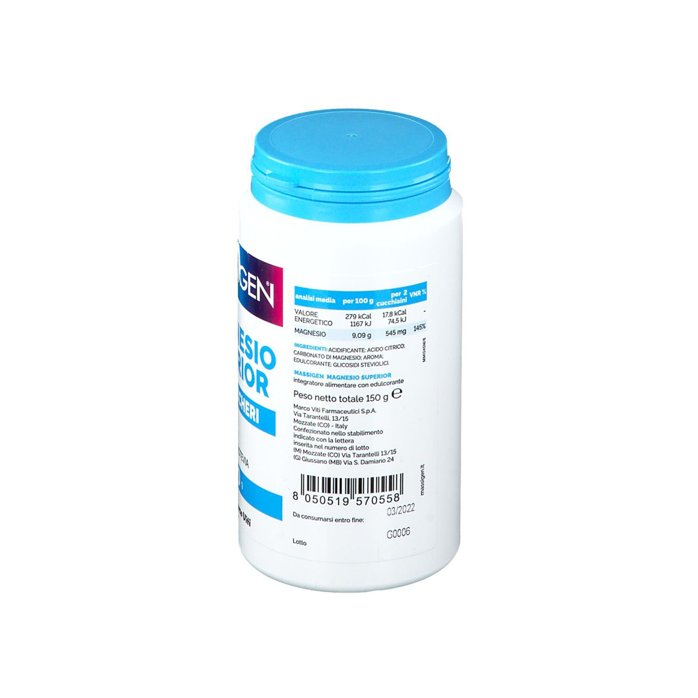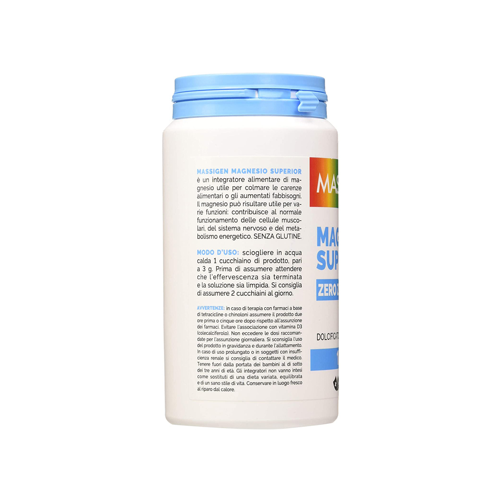 Il magnesio può contribuire alla normale funzione muscolare e alla riduzione di stanchezza e affaticamento. Favorisce la regolare funzionalità del sistema nervoso, contribuisce a bilanciare il metabolismo energetico e svolge un ruolo importante nella divisione cellulare.