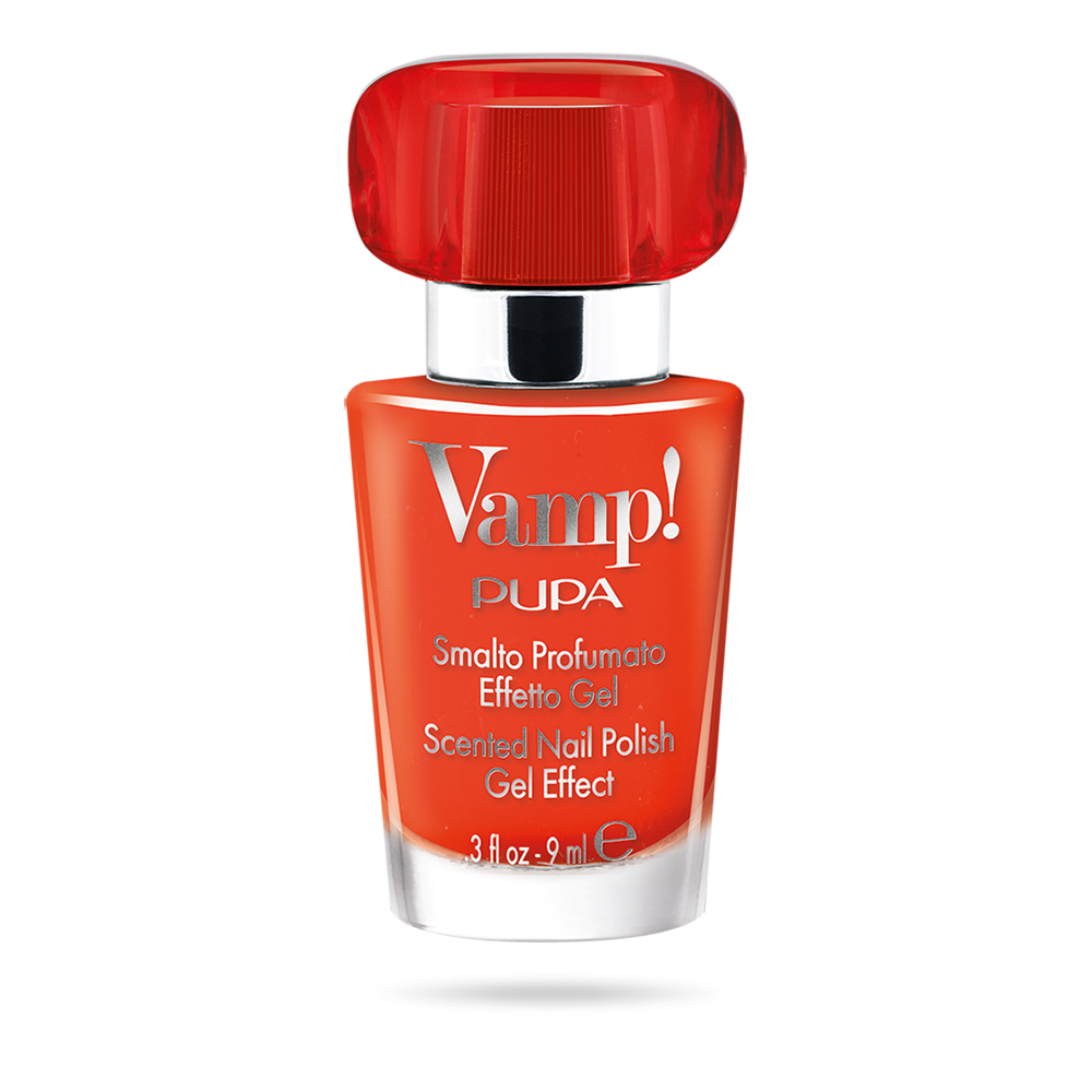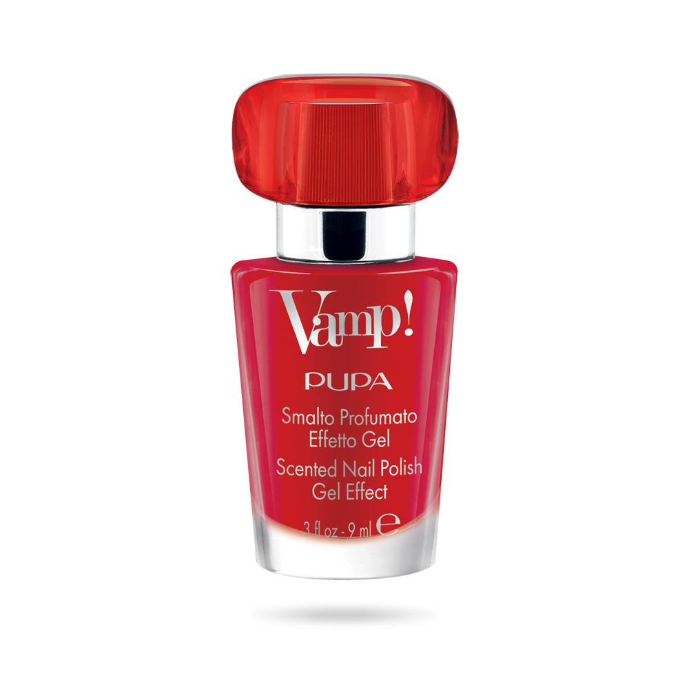 Vamp! è lo smalto declinato nelle stesse fragranze di Vamp! Eau de Parfum per unghie delicatamente profumate e dall’effetto gel seducente. La texture unica permette di ottenere un effetto plumping tridimensionale dalla brillantezza estrema. Le unghie risultano volumizzate con un film di colore omogeneo dal finish ultra lucido eccezionalmente resistente alle sbeccature. Il profumo si rivela quando lo smalto è asciutto e, grazie all’alta concentrazione della fragranza presente in formula, le unghie risultano delicatamente profumate a lungo. Il packaging ricorda una vera e propria miniatura di Vamp! Eau de Parfum e riprende la forma iconica di Vamp! mascara. L’applicatore “fan brush” - dal formato piatto a ventaglio con 300 setole dal taglio arrotondato - unito al sotto tappo millerighe, garantisce un’applicazione facile e scorrevole e un rilascio uniforme e controllato del colore.