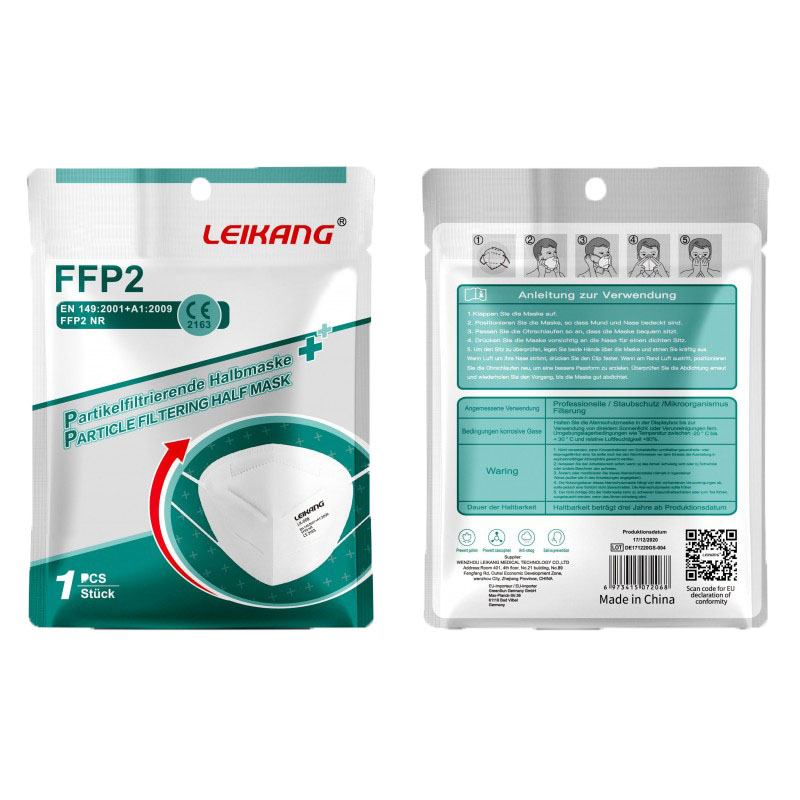 Mascherina di protezione individuale FFP2, senza valvola, con filtro, non sterile, a cinque strati protettivi, mono-paziente.