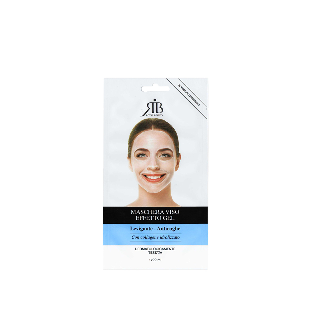 Maschera viso effetto gel, levigante, antirughe, in morbido tessuto: comoda e facile da applicare.
