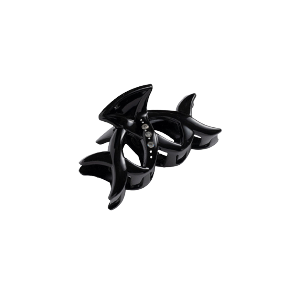 Pinza per capelli in plastica nera impreziosita da strass, per donare un tocco in più alle pettinature più semplici.