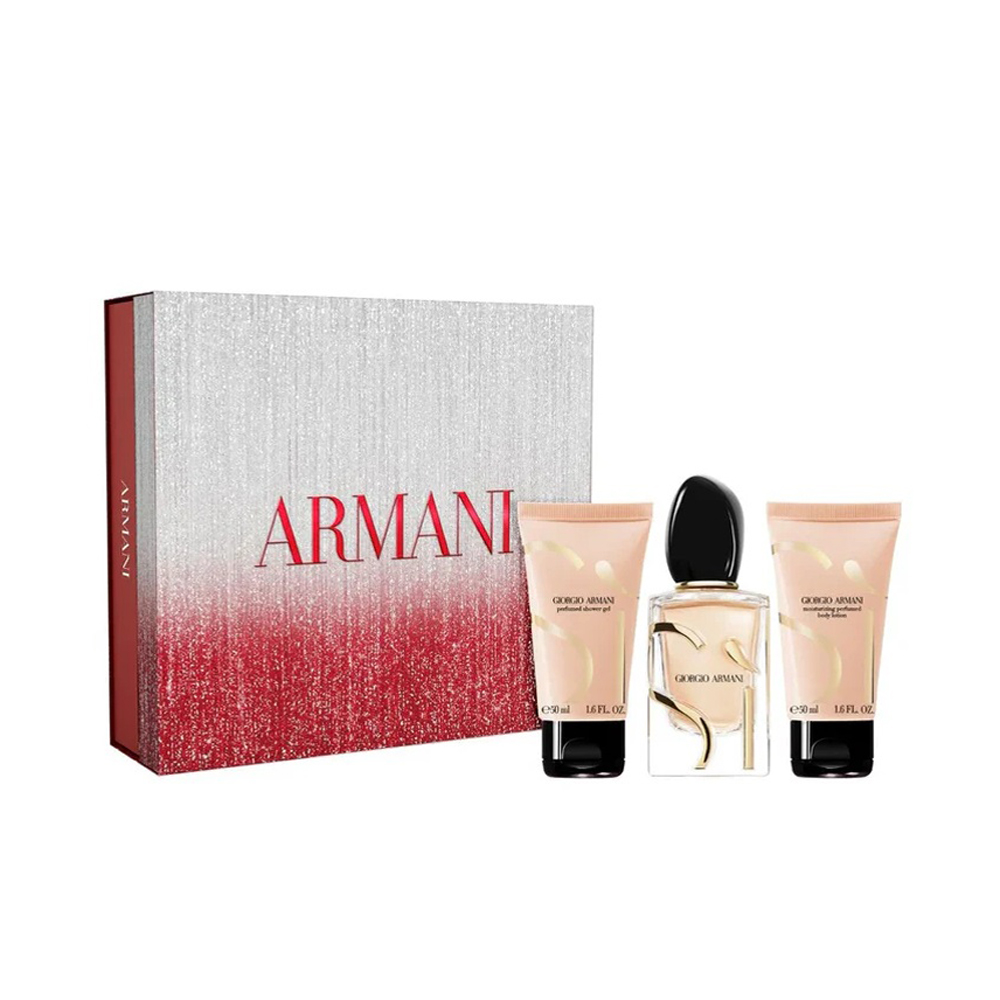 Questo esclusivo cofanetto è il regalo perfetto per le persone che ami. All'interno è incluso Si Eau de Parfum 50 ml, Gel Doccia 50 ml, Latte Corpo 50 ml.