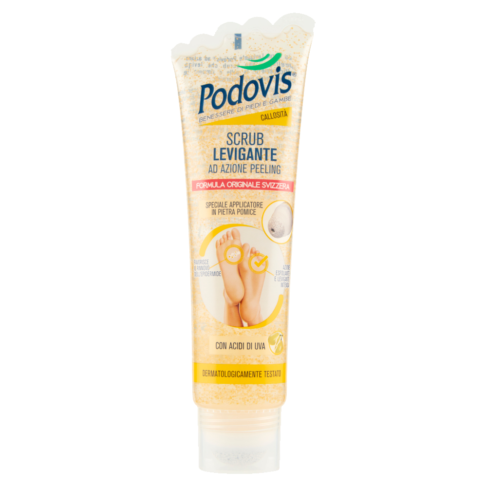 Lo Scrub Levigante Podovis ad azione peeling è uno scrub che leviga efficacemente la pelle e rimuove le cellule morte dell'epidermide.