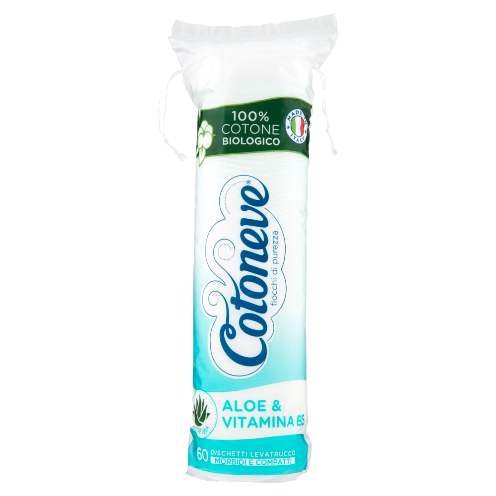 I Dischetti Cotonove, arricchiti con Aloe Vera e Vitamina B5 sono molto soffici, super assorbenti e resistenti. Con cotone di elevata qualità proveniente da agricoltura biologica. Con Aloe Vera: usata da centinaia di anni per le sue proprietà idratanti ed antiossidanti. Con Vitamina B5: conosciuta anche come acido pantotenico, svolge un'azione antistress nei confronti della cute.