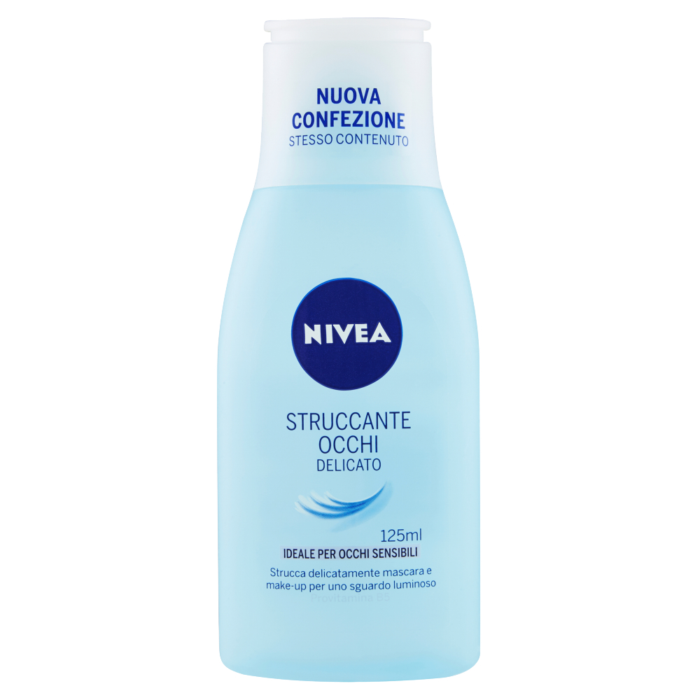 Ideale per occhi sensibili. Strucca delicatamente masacara e make-up per uno sguardo luminoso. Nivea Struccante Occhi delicato, arricchito con Provitamina B5: - strucca rispettando la pelle sensibile del cotorno occhi, - non lascia fastidiosi residui oleosi. Risultati. La zona del contorno occhi, perfettamente detersa, e più luminosa.