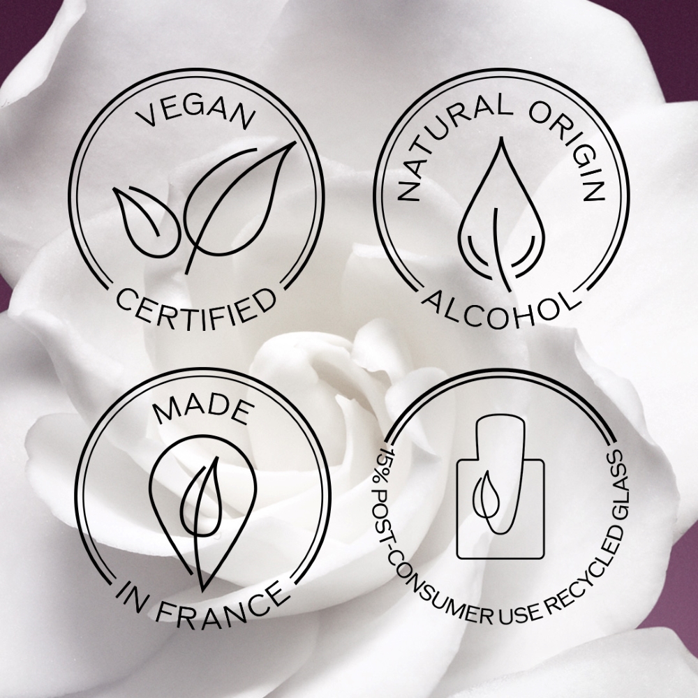 Questa fragranza è certificata vegan e unisce ingredienti naturali con altri ingredienti sintetici di origine biologica.