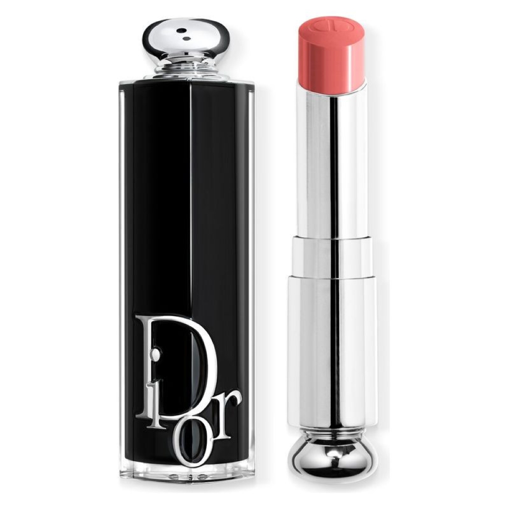 Il rossetto brillante Dior Addict, in una custodia nera laccata effetto vinile incisa con il logo Dior Oblique che richiama gli abiti della Maison e sormontato da una perla argentata, unisce sobrietà ed eleganza.