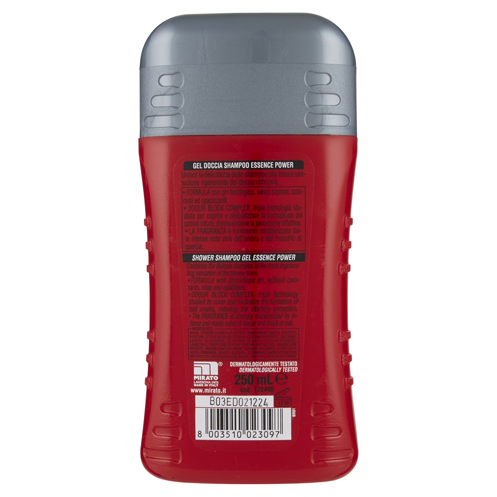 Unisce la delicatezza dello shampoo alla fresca sensazione rigenerante del doccia schiuma. - Formula con pH fisiologico, senza sapone, coloranti ed opacizzanti. - Odour Block Complex, tripla tecnologia studiata per coprire e neutralizzare la formazione del cattivo odore, diminuendone la percezione olfattiva. - La Fragranza e fortemente caratterizzata dalle intense note virili dell'ambra e del muschio di quercia.