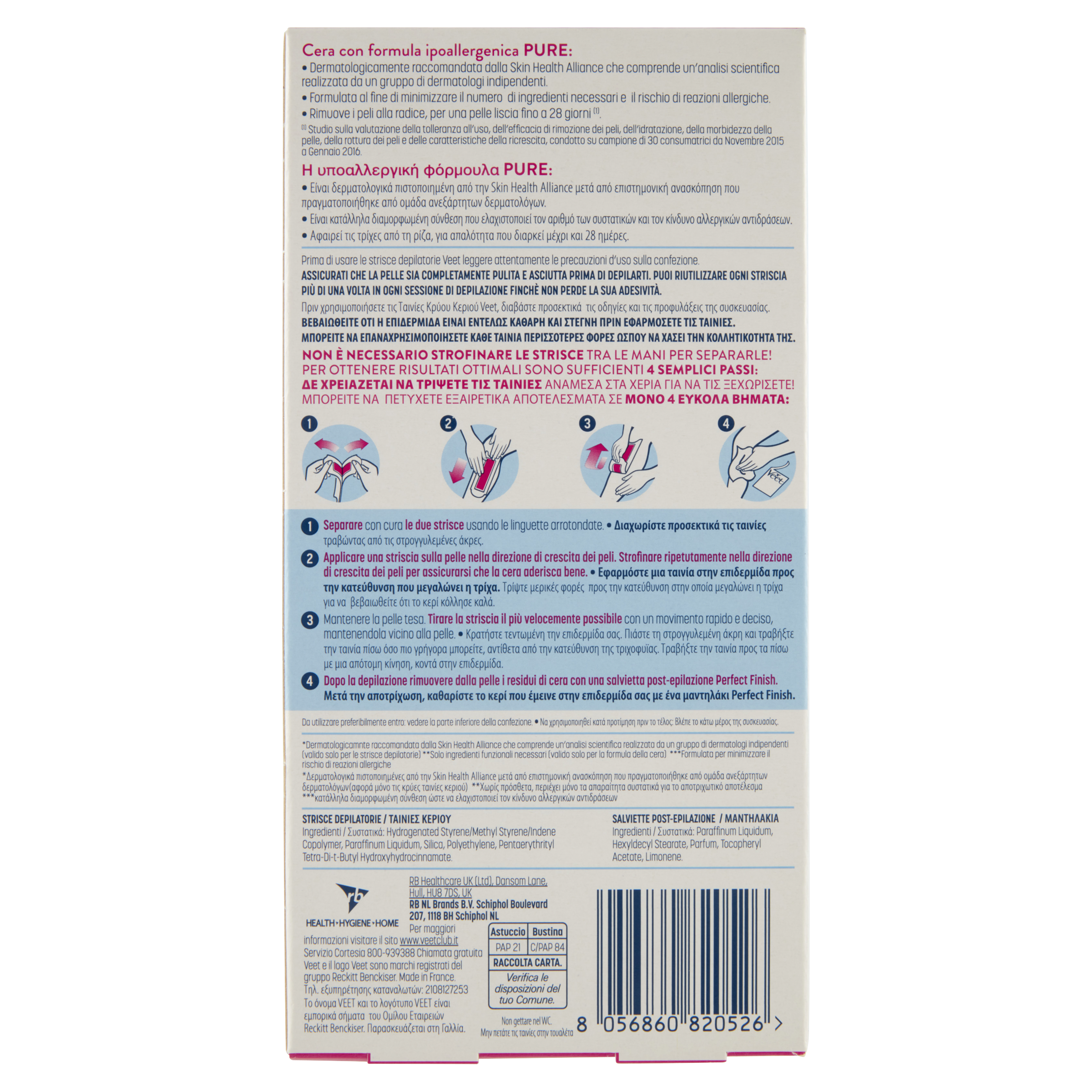 ⁽¹⁾ Studio sulla valutazione della tolleranza all'uso, dell'efficacia di rimozione dei pelli, dell'idratazione, della morbidezza della pelle, della rottura dei peli e delle caratteristiche della ricrescita, condotto su campione di 30 consumatrici da Novembre 2015 a Gennaio 2016.