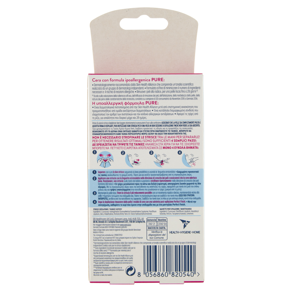 Prima di usare le strisce depilatorie Veet leggere attentamente le precauzioni d'uso sulla confezione. Assicurati che la pelle sia completamente pulita e asciutta prima di depilarti. Puoi riutilizzare ogni striscia più di una volta in ogni sessione di depilazione finchè non perde la sua adesività.