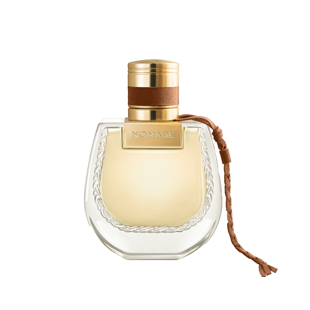 L’emblematico flacone Nomade viene rivisitato in tonalità che richiamano la natura. Un intreccio marrone avvolge il collo del flacone, a rappresentare i legami che si creano durante ogni viaggio. Questo motivo simbolico è anche inciso sul vetro del flacone che contiene la fragranza Chloé Nomade.