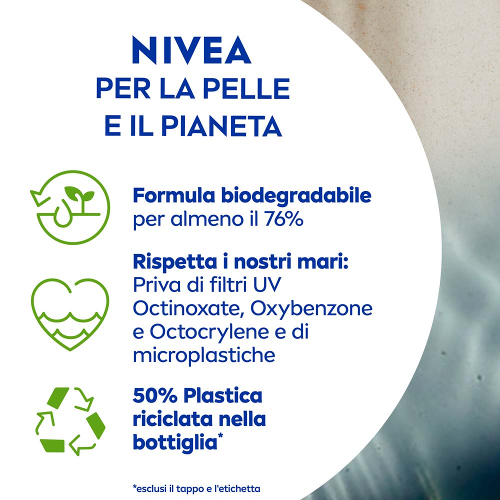 Nivea Sun Protect&Hydrate è un latte solare corpo con fattore di protezione 30. La sua formula protegge dai raggi UV, preservando il microbioma, fisiologico ecosistema della barriera cutanea, dalle scottature e dal foto-invecchiamento e idrata per 48h.
