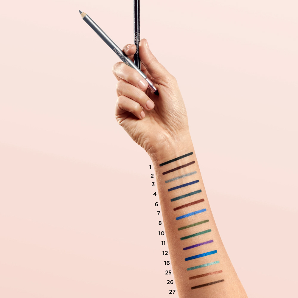 Una matita morbida e sfumabile che, grazie alla sua straordinaria versatilità di utilizzo, consente una triplice modalità di applicazione: può essere usata come come un ombretto da stendere e sfumare, grazie all’apposito applicatore, oppure utilizzata per disegnare il contorno occhi, grazie al tratto ad alta precisione o, infine, per definire l’interno dell’occhio, per un effetto kajal.