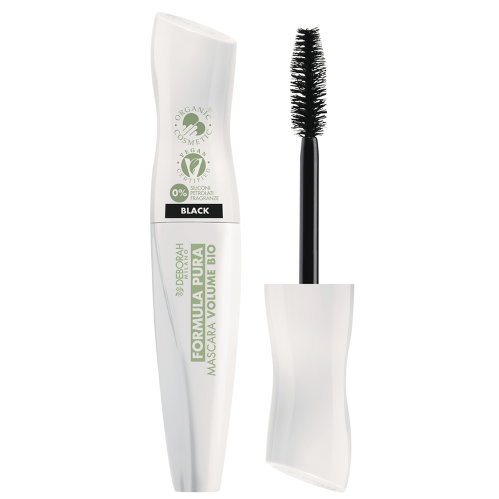Il Mascara Formula Pura Volume Bio di Deborah Milano è composto al 100% da ingredienti di origine naturale, con il 52% provenienti da agricoltura biologica. Arricchito con olio di mandorle, burro di karité e aloe vera, nutre e protegge le ciglia, garantendo un effetto volumizzante senza compromettere la salute o l'ambiente. È vegano, cruelty-free e adatto anche agli occhi sensibili e ai portatori di lenti a contatto. Inoltre, il packaging è realizzato con il 45% di plastica riciclata.