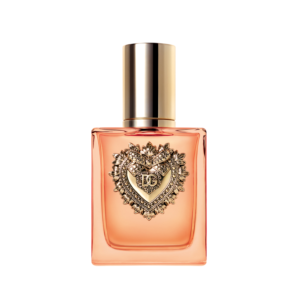 Dolce&Gabbana Devotion Eau de Parfum Intense è racchiusa in una sofisticata bottiglia di vetro color ambra, elegantemente decorata dall'inconfondibile Cuore Sacro.