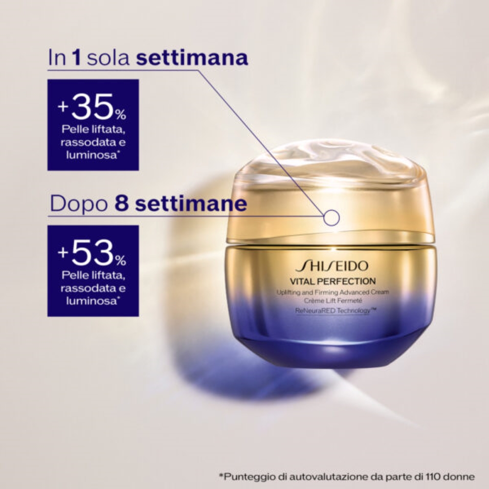 La crema anti-età best seller Shiseido è formulata specificamente per contrastare i molteplici segni dell’invecchiamento e donare un aspetto visibilmente liftato, rassodato e luminoso in 1 sola settimana. 4 volte più efficace della versione precedente: rivisitata con ingredienti più potenti per un’efficacia superiore. Ora in formato ricaricabile. Questa crema viso ricaricabile ha una texture lussuosa e vellutata.
