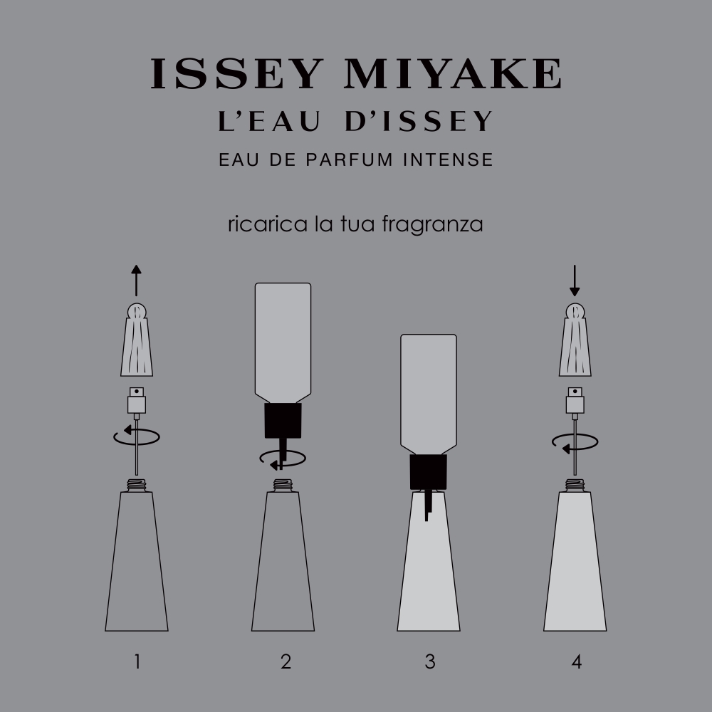 Vaporizza L’Eau d’Issey Eau de parfum intense nei punti strategici, come collo, polsi e piega dei gomiti, in modo che il profumo si diffonda con il calore del tuo corpo.