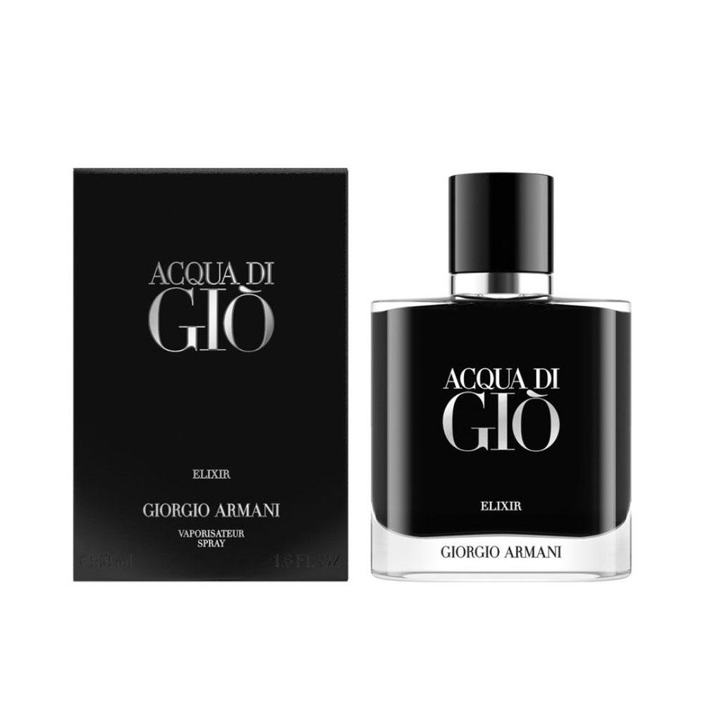 ACQUA DI GIÒ ELIXIR, la fragranza più concentrata mai realizzata per ACQUA DI GIÒ, intraprende un viaggio nel cuore della forza del mare, trasmettendo una nuova accattivante profondità e intensità. Modellata attorno a un intenso accordo di violetta, le cui sfaccettature verdi, floreali e aromatiche sono emblematiche della spontaneità della natura, intrecciate alla sensualità di un accordo cuoiato e a un edificante accordo marino. L'elegante intensità di ACQUA DI GIÒ ELIXIR è racchiusa in un nuovo sofisticato flacone. La bottiglia quadrata arrotondata, realizzata in vetro lucido, attira lo sguardo verso le sue misteriose profondità. L'interno è impreziosito da una lacca nera profonda, che ricorda l'ossidiana più rara, sussurrando lusso nascosto e potere accattivante. Il tappo magnetico, reso in un'elegante combinazione di nero e argento, aggiunge un tocco finale di sofisticatezza contemporanea.