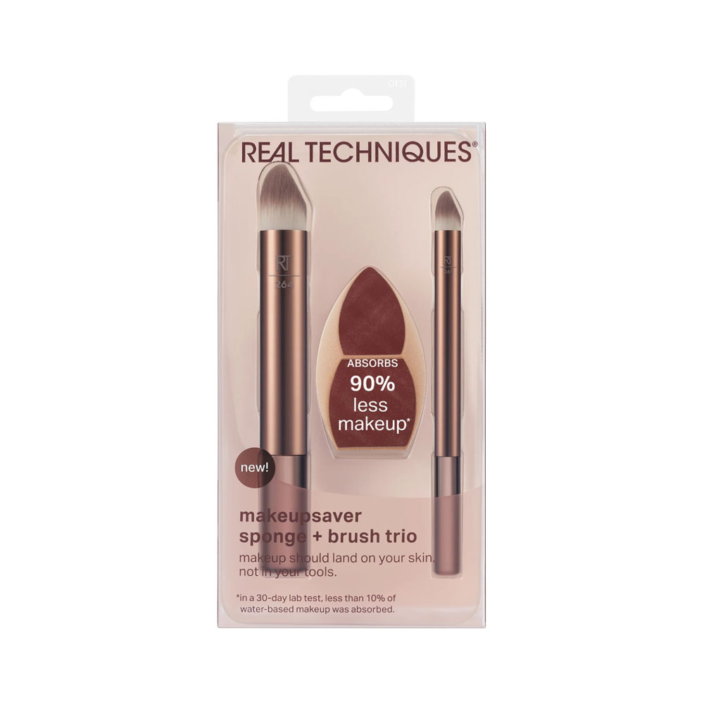 Ti presentiamo il set spugnetta per trucco Makeupsaver + duo di pennelli per il viso di Real Techniques , un set progettato per ottimizzare la tua routine di trucco.