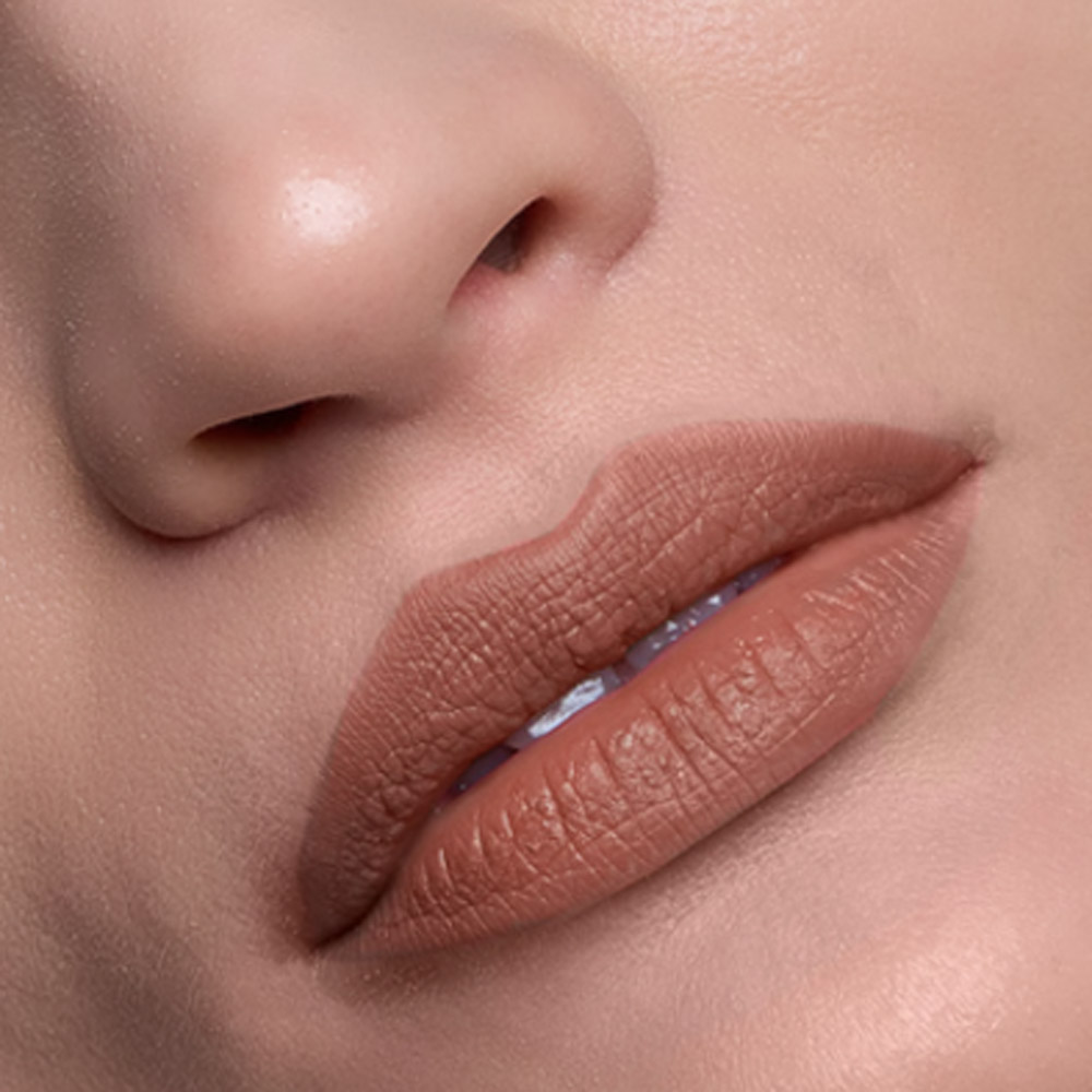 Rossetto opaco per labbra intense. Texture cremosa, leggera e con effetto “soft-touch”.