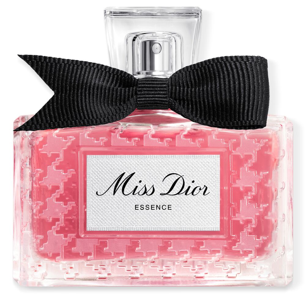 Miss Dior Essence si impone rinnovando la propria identità delle origini e reinterpretando il flacone della tradizione, ideato nel 1948 da Christian Dior: un motivo pied-de-poule effetto ghiaccio abbinato a un fiocco poignard in gros-grain nero, fabbricato in Francia, che esalta un prezioso tappo di vetro.