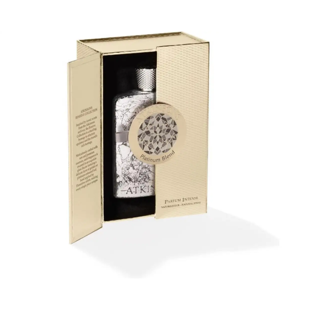 Ci immergiamo nella Londra degli anni '20, nel mondo scintillante delle Bright Young Things, le giovani celebrità britanniche i cui nomi si possono scoprire in alcune pagine degli archivi Atkinsons. Ornate di diamanti e dei più raffinati gioielli in platino, le giovani sofisticate brillavano e si facevano strada da una meta all'altra, godendosi la libertà della Gran Bretagna del dopoguerra. Freddo e sofisticato, come solo il platino può essere, il flacone è decorato a mano con una finitura simile al platino da artigiani fiorentini. Ogni flacone presenta un motivo unico, garantendo che non ci siano due design esattamente uguali.