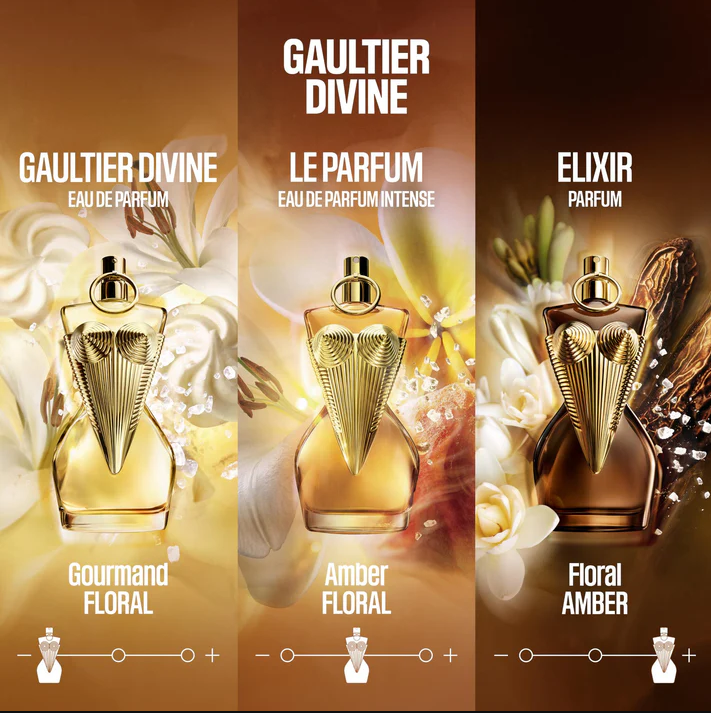 Affermate la vostra femminilità senza freni con Gaultier Divine Elixir, una fragranza floreale ambrata tanto potente quanto stravagante.